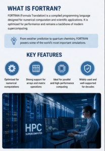 In the fields of scientific computing, physics, chemistry, engineering, and high-performance computing (HPC), FORTRAN remains one of the most powerful and widely used programming languages.